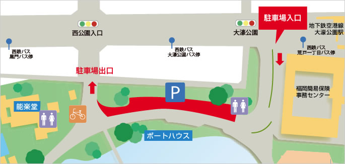 「大濠公園」って交差点から入れる駐車場がある。(普通車103台)